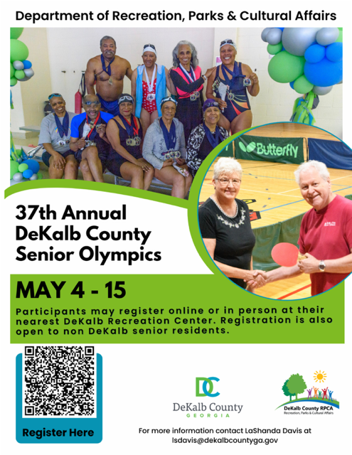 Once again, Decatur Rec. will be the site of DeKalb Senior Olympics–Table Tennis. The fun will start at 6 p.m., Tuesday, May 12. If you are 50+ years of age, please join us. For all the info, click HERE. Also, you can scan the code on the poster above. I know what you’re thinking… but I assure you that I did NOT pay to be pictured on the poster.
